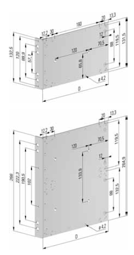 – Модель „IEEE“: передние профили с перфорацией соответствуют норме IEEE 1101.10 – 1 T = 4 HP (20.32 мм)
